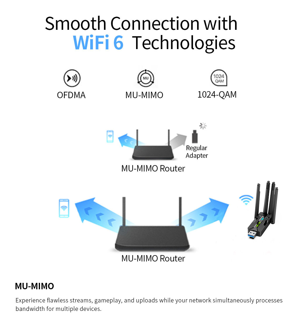 Supports MU-MIMO multi-device connection to improve network efficiency