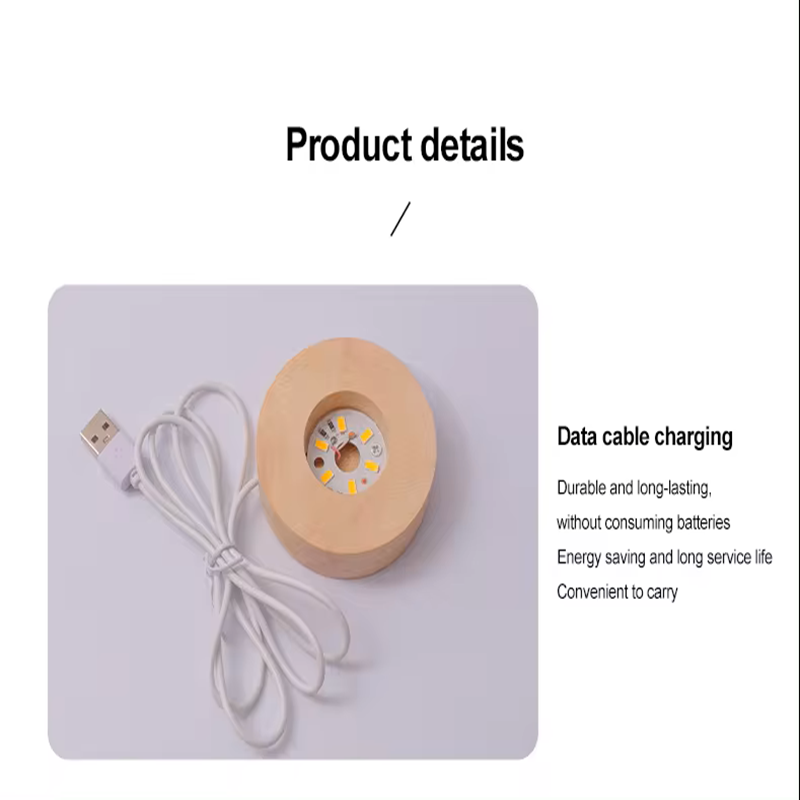 - 1 x LED Light Wooden Base with USB Cable